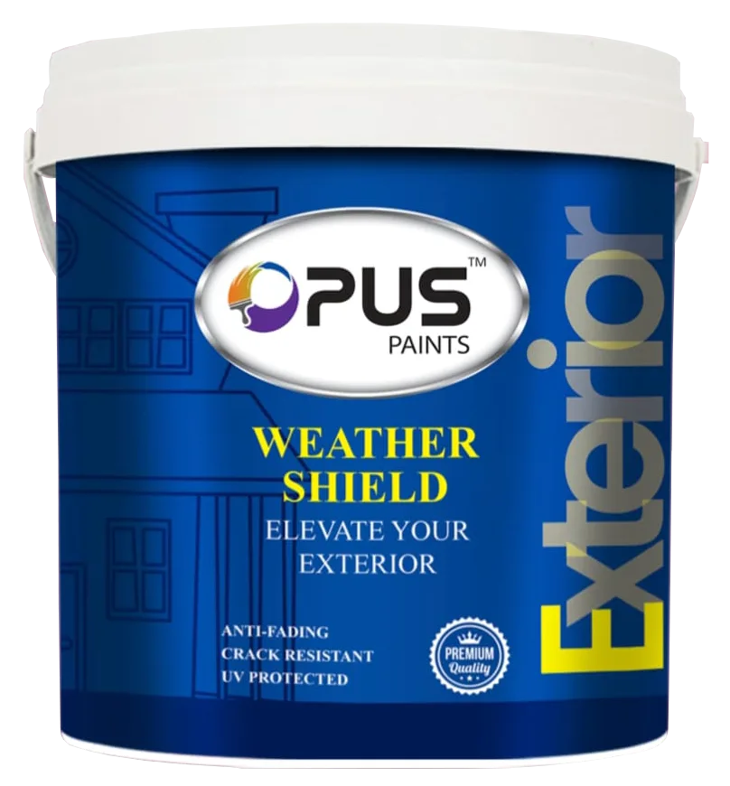 Weather Shield by Opus Paints is a premium exterior paint designed to protect your walls from harsh sun, rain, and dust while delivering long-lasting color and durability.